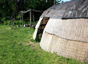 In 1971, a team of archaeologists sponsored jointly by the Ohio Historical Society and the Ohio State University discovered the impressions of posts from a Hopewell house nearly 2000 years old. Today at the site, you can see where these original posts were located where modern posts were placed in the ground on the same location and size of the original posts.